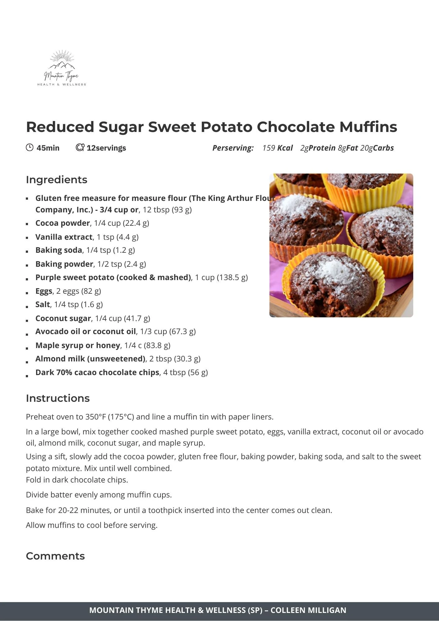 Reduced Sugar Sweet Potato Chocolate Muffins